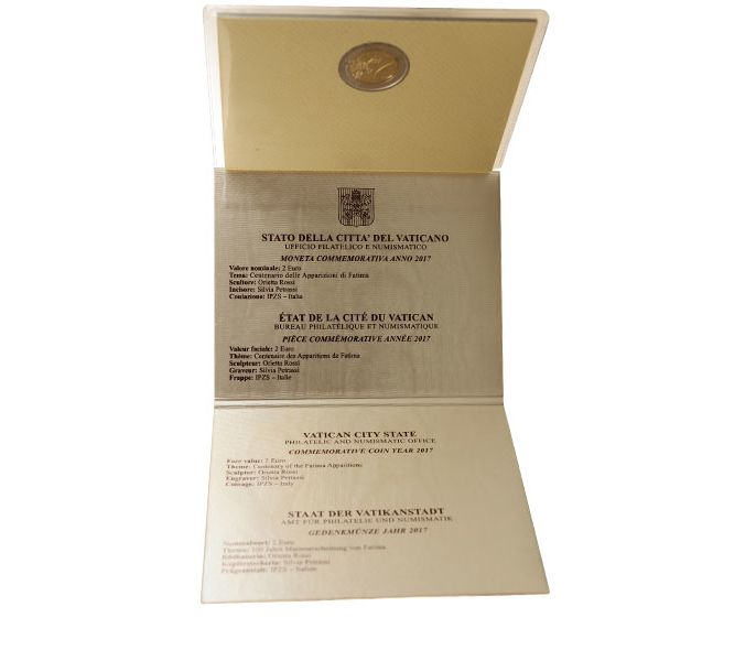 Монета 2 евро 2017 «100-летие явления Девы Марии в Фатиме» Ватикан (в буклете)