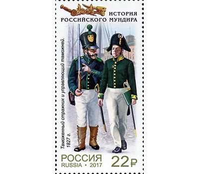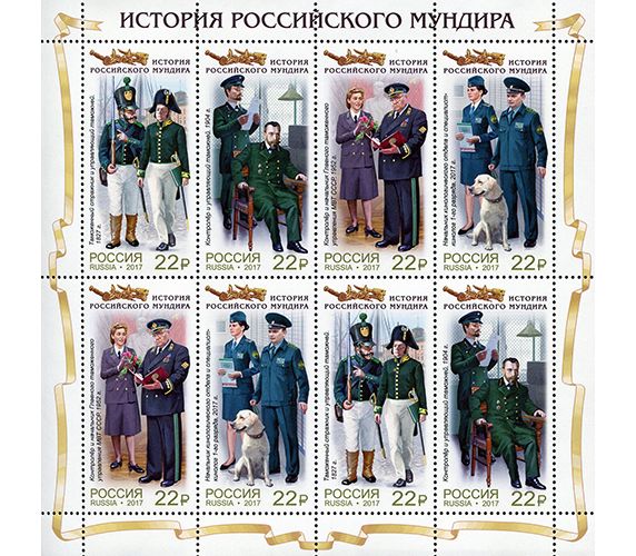 Малый лист «История российского мундира. Мундиры таможенной службы России» Россия, 2017