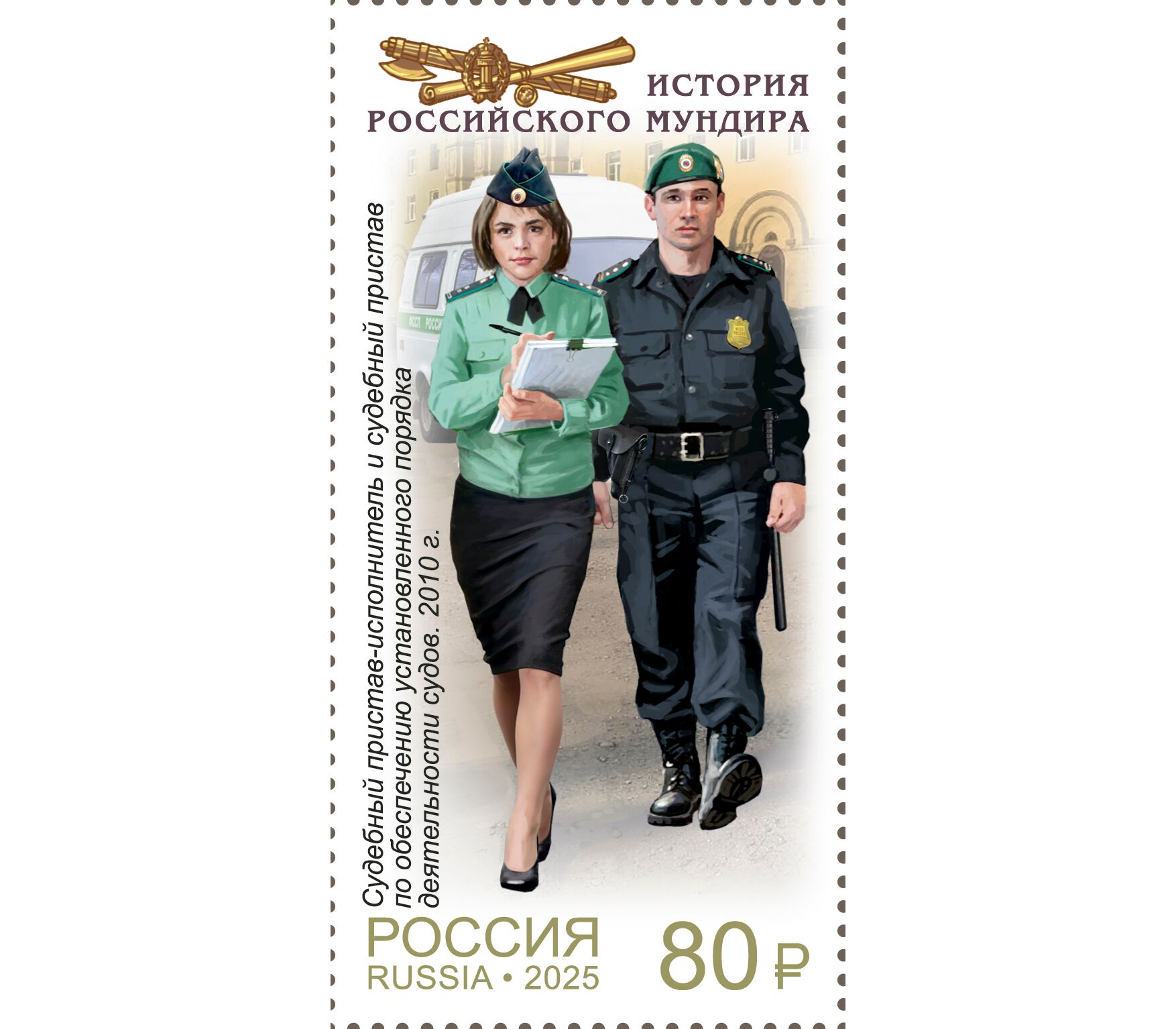 5 почтовых марок «История российского мундира. Мундиры службы судебных приставов» 2025