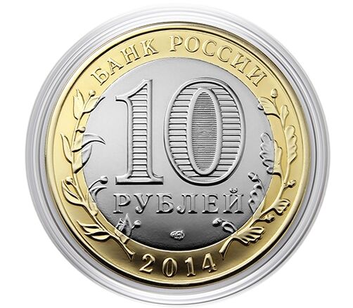 За основу взята оригинальная монета. Изображение нанесено методом лазерной гравировки. Монета с объемной заливкой поверх эмали. Сувенирная продукция, поставляется в открытке и капсуле.