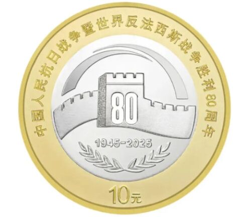 Монета 10 юаней 2025 «80 лет Победы над Японией» Китай