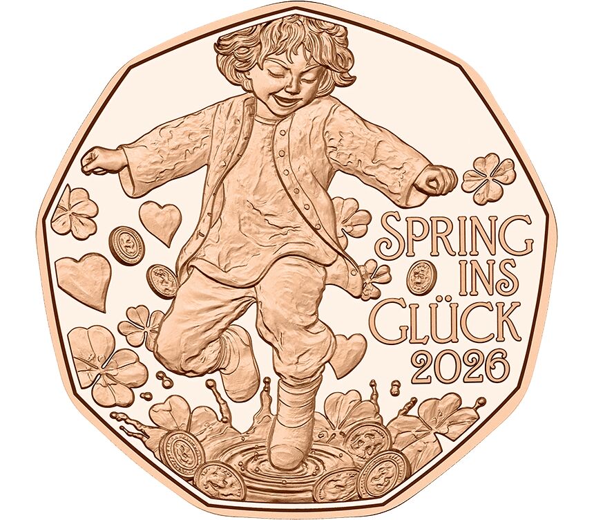 Австрийская новогодняя монета, посвященная встрече 2026 года.
